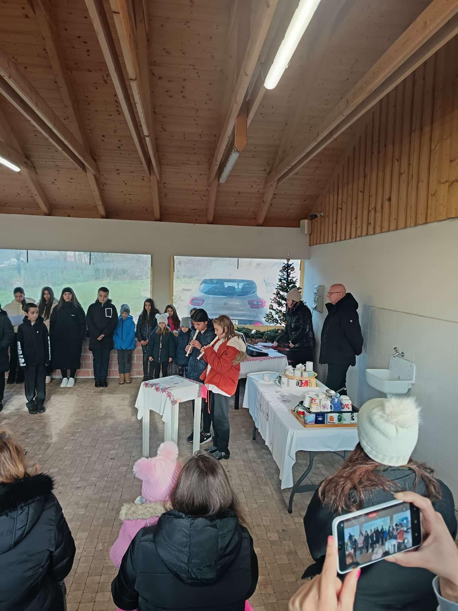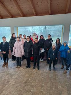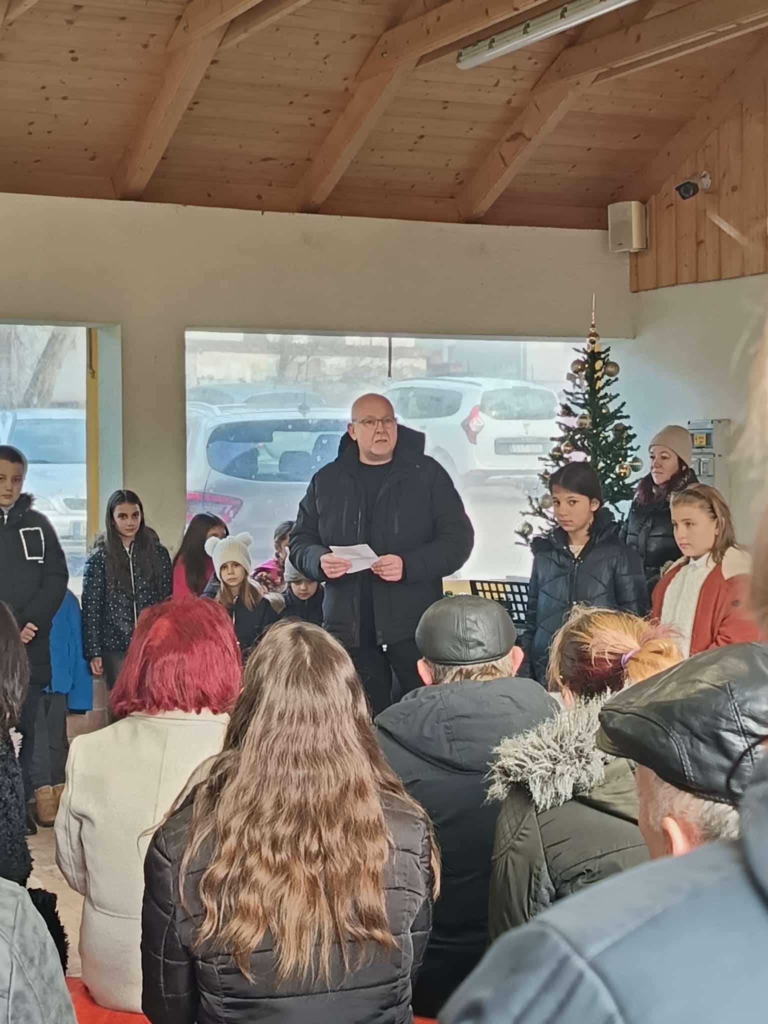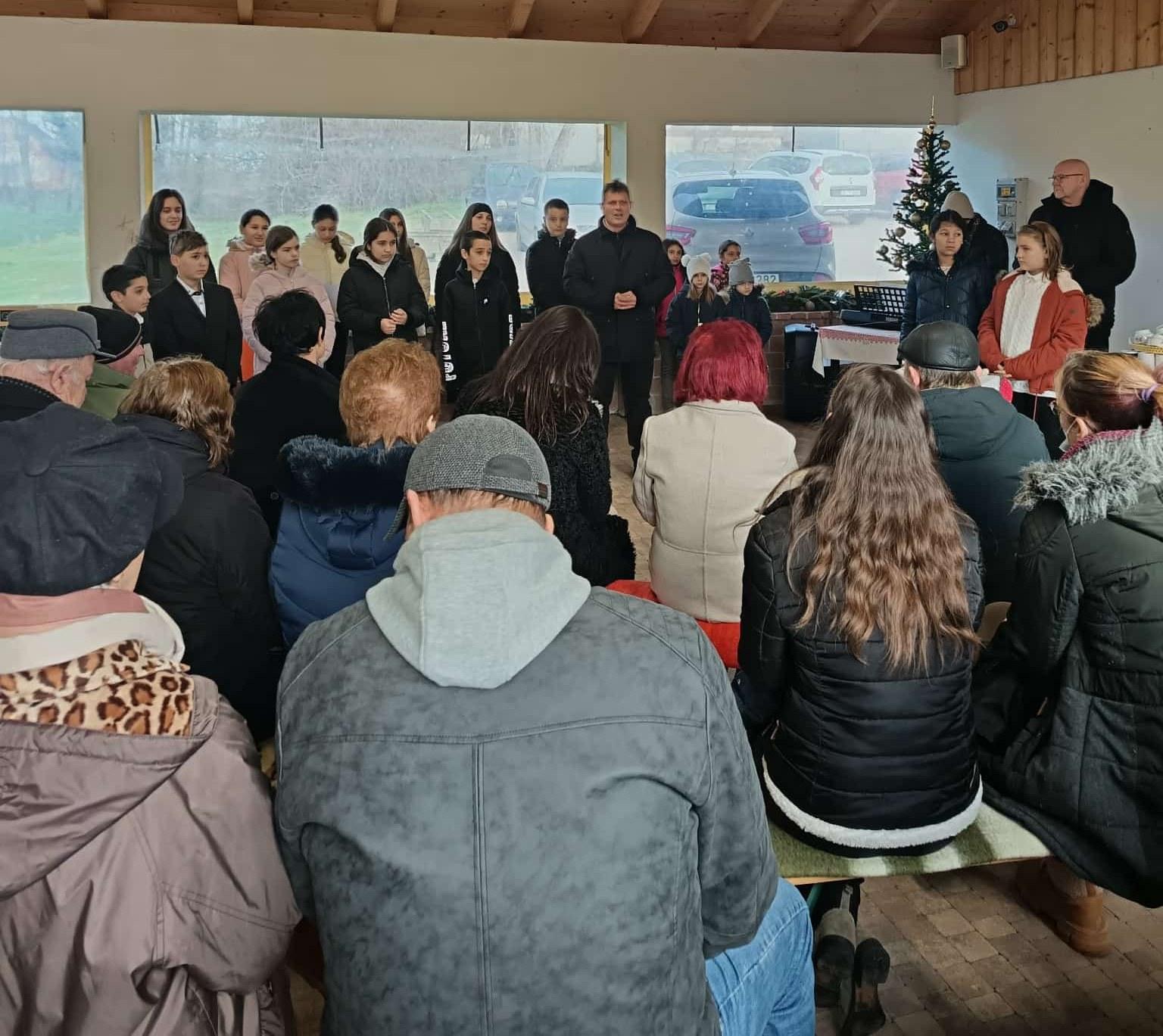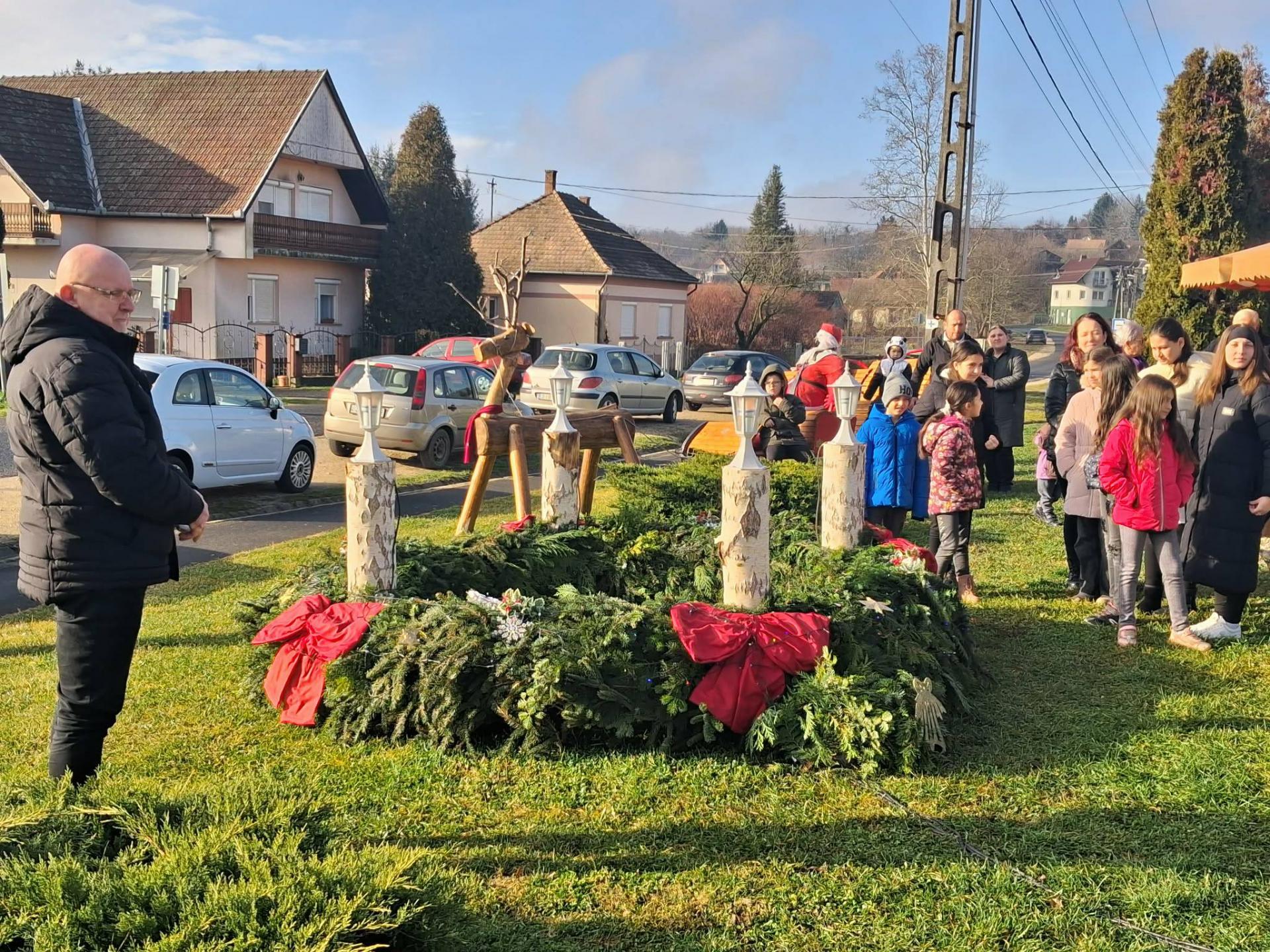 Iskolánk gyújthatta meg idén a falu adventi koszorúján a második gyertyát.