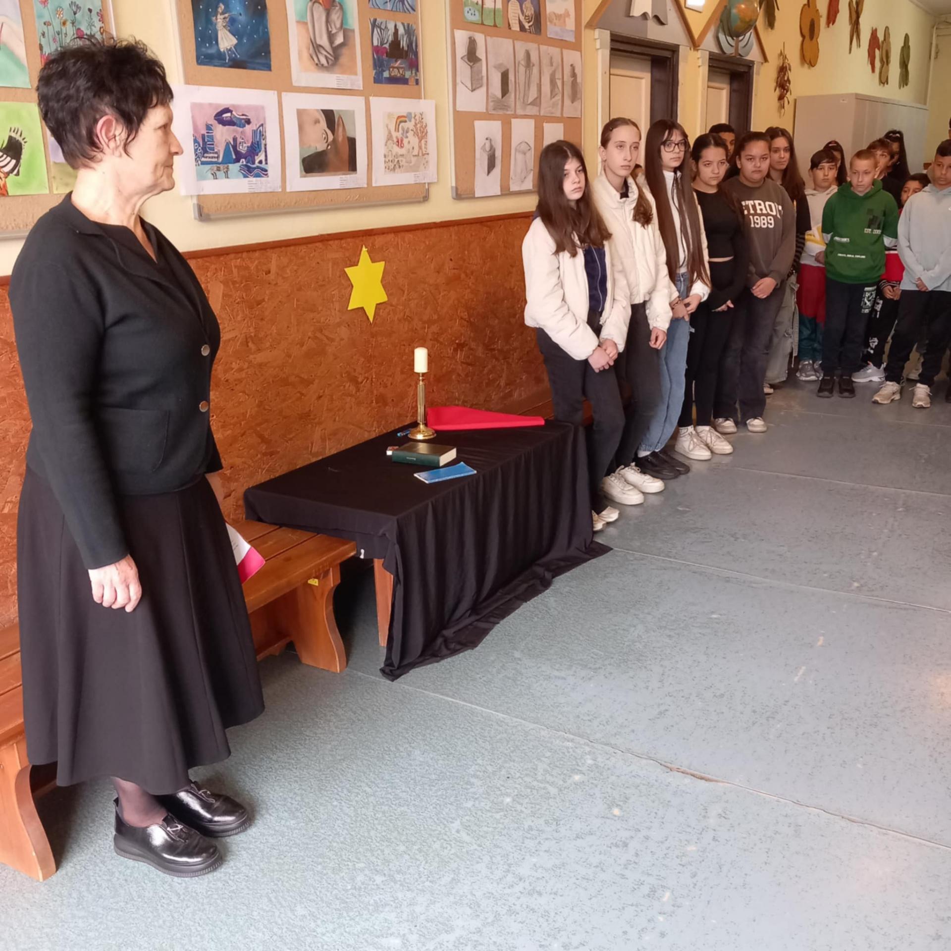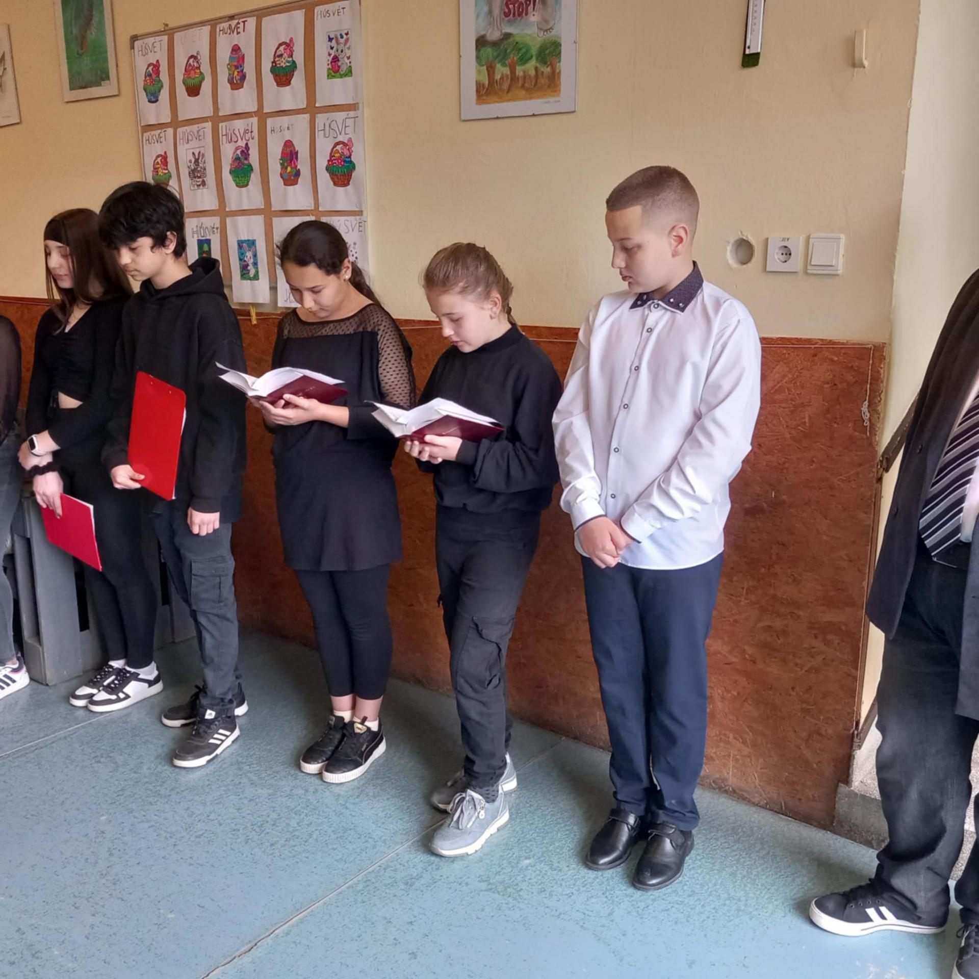 A magyar kormány 2001-ben nyilvánította emléknappá április 16-át. Idén ez a nap nálunk is a megemlékezésé, melyen iskolánk felsős tanulói versekkel, prózai idézetekkel elevenítették fel a szégyenletes kort.