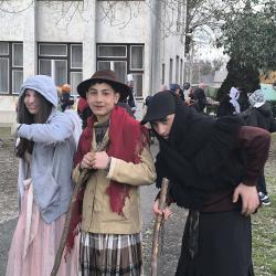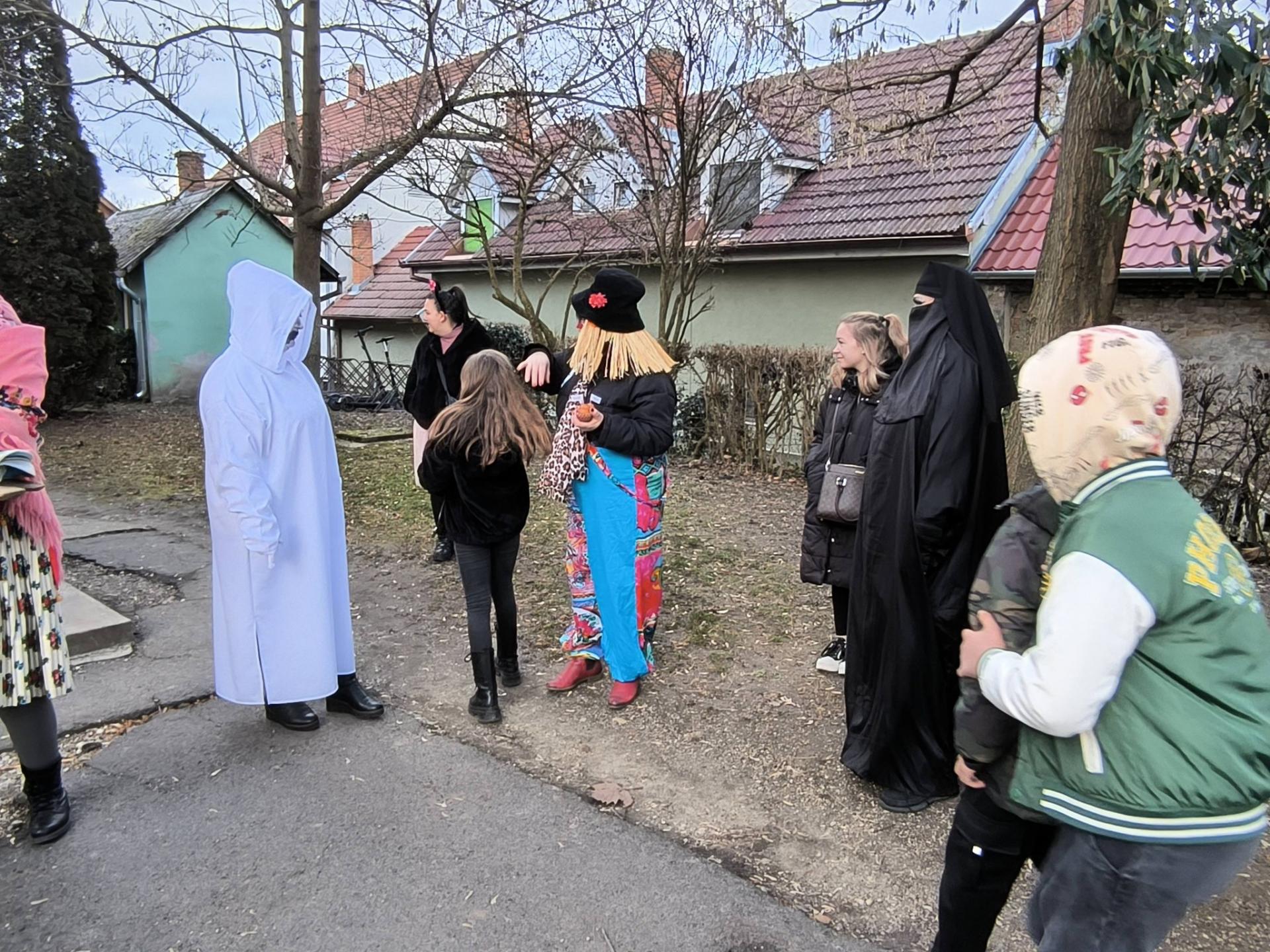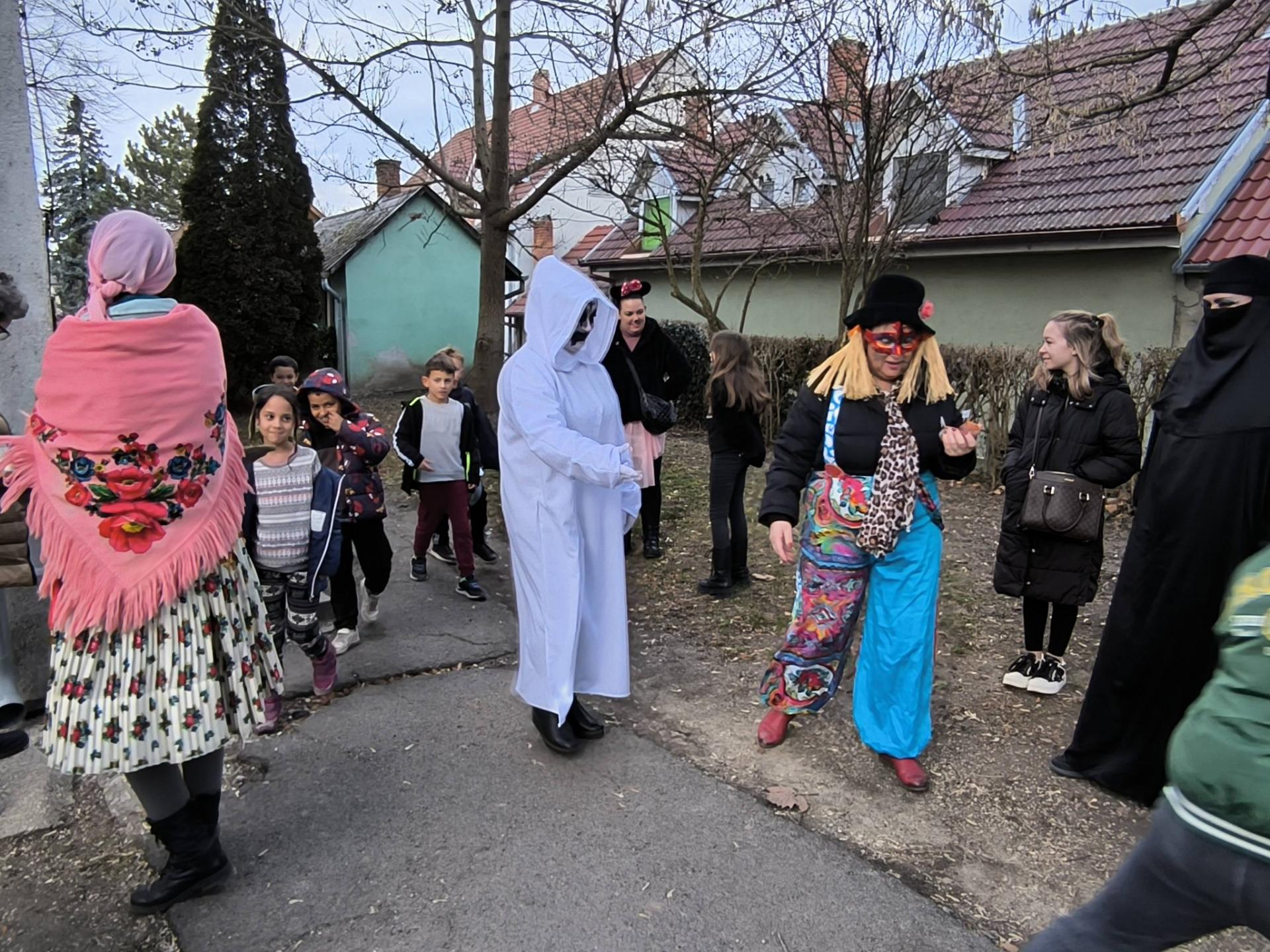 Iskolánk diákjai részt vettek az Együtt Galambokért Egyesület által szervezett húshagyó keddi hagyományőrző jelmezes felvonuláson (maszkázáson). Különféle vicces jelmezekbe öltözve járták a falut: voltak az óvodában, önkormányzatnál, az iskolában. A jelmezes felvonulást követően a piactéren kóstolhatták a helyben sült farsangi fánkot. A nap végén pedig szalmabábu égetéssel búcsúztak a téltől.