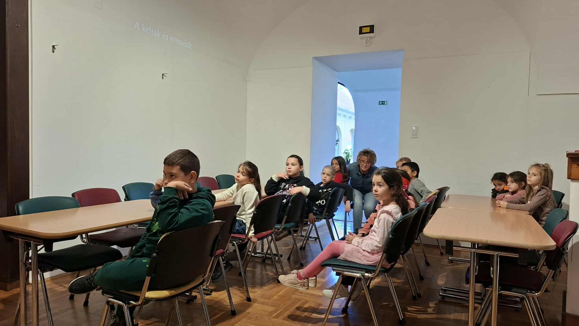 2025. október 14-én alsós tanulóink a Thúry György Múzeumban kreatív foglalkozáson vettek részt. Szmodics-Tugya Beáta történész-muzeológus, archeozoológus vezette be a gyerekeket a Kelta és a római kor című foglalkozás keretén belül az időszakok viselet és tárgyi leletanyagának múltidéző világába. Házmakett által ismerkedtek a kelták otthonaival, bemutatásra kerültek a kelta harcosok fegyverei, a hölgyek ékszerei. Majd betekintést kaptak a rómaiak életébe is. Mozaikkészítéssel elevenítették fel az erre az időszakra jellemző padlódíszítést. A gyerekek nagyon jól érezték magukat.