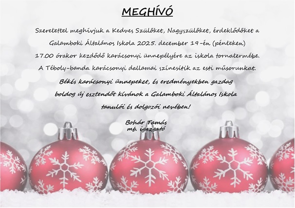 Hírek 2025. december 16., kedd „A varázslat a szívedben él” – Hamupipőke rajzpályázat belépés 2025. december 15., hétfő Cserhátisok ajándéka belépés 2025. december 15., hétfő Meghívó karácsonyi ünnepélyre belépés 2025. december 13., szombat Adventi harmadik gyertyagyújtásunk belépés 2025. december 11., csütörtök Országos rajzpályázat II. helyezések belépés 2025. december 08., hétfő Decemberi sulilabor belépés 2025. december 08., hétfő Gyertyagyújtás a falu adventi koszorúján belépés 2025. december 05., péntek Adventi második gyertyagyújtás belépés 2025. december 05., péntek Nálunk járt a Mikulás belépés 2025. december 02., kedd Adventi kézműves foglalkozás belépés 2025. november 28., péntek Adventi első gyertyagyújtásunk 2025. belépés 2025. november 28., péntek NEP programon járt a 8. osztály belépés 2025. november 24., hétfő Sulilabor belépés 2025. november 20., csütörtök Körzeti egészségnevelési verseny belépés 2025. november 19., szerda Pályaorientációs foglalkozások 2025.11.19. belépés 2025. november 18., kedd "Tarka lepke, kis mese..." Zala Vármegyei Vers- és Mesemondó Verseny 2025. belépés 2025. november 14., péntek "Szép Zalában születtem" területi népdaléneklési verseny 2025.11.13. belépés 2025. november 13., csütörtök "Az egészség, mint érték" rajzpályázat belépés 2025. november 13., csütörtök "Szakmák, mesterségek világa" rajzpályázat belépés 2025. november 10., hétfő Bobo Fun Park Éld+ élmény belépés