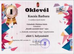 Gratulálunk Barbinak és a felkészítőjének: Csőgör Csabánénak.