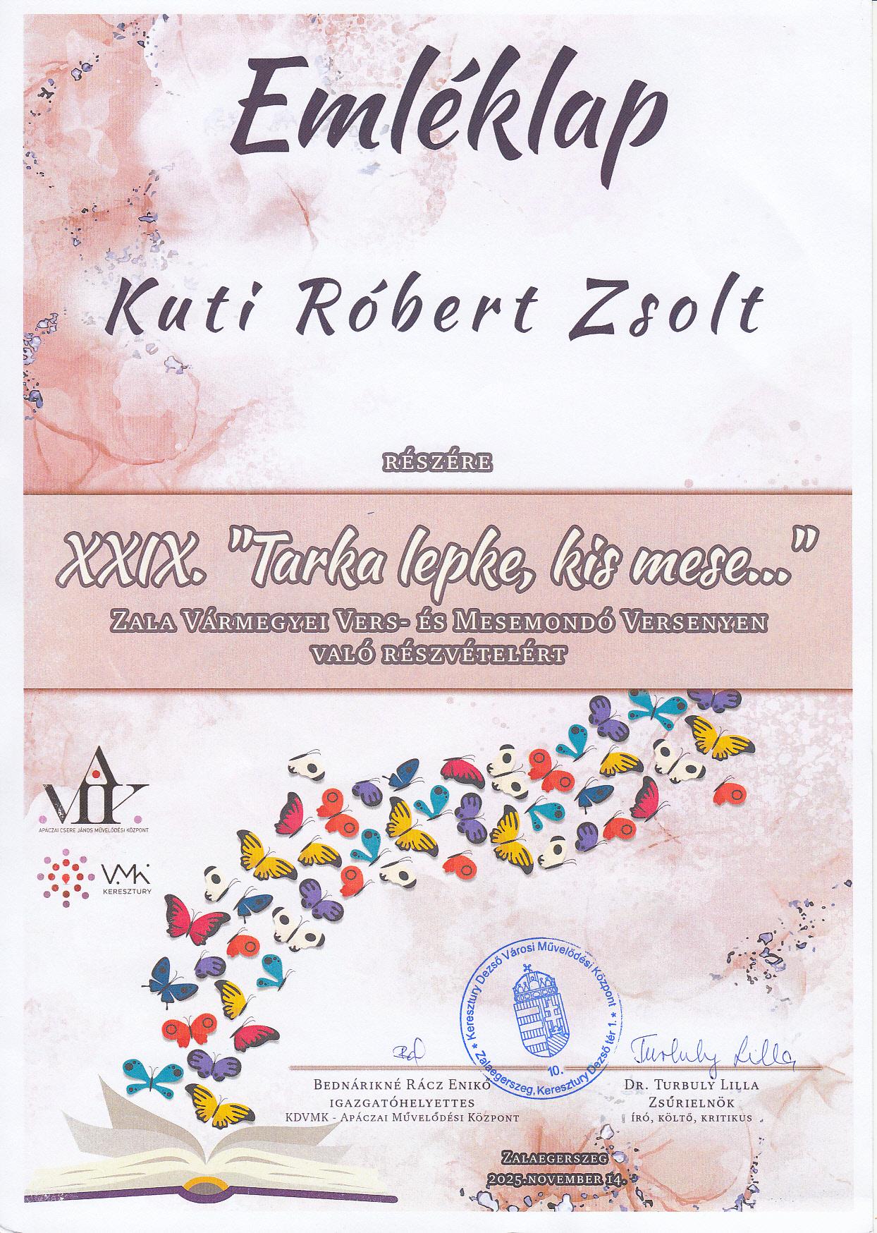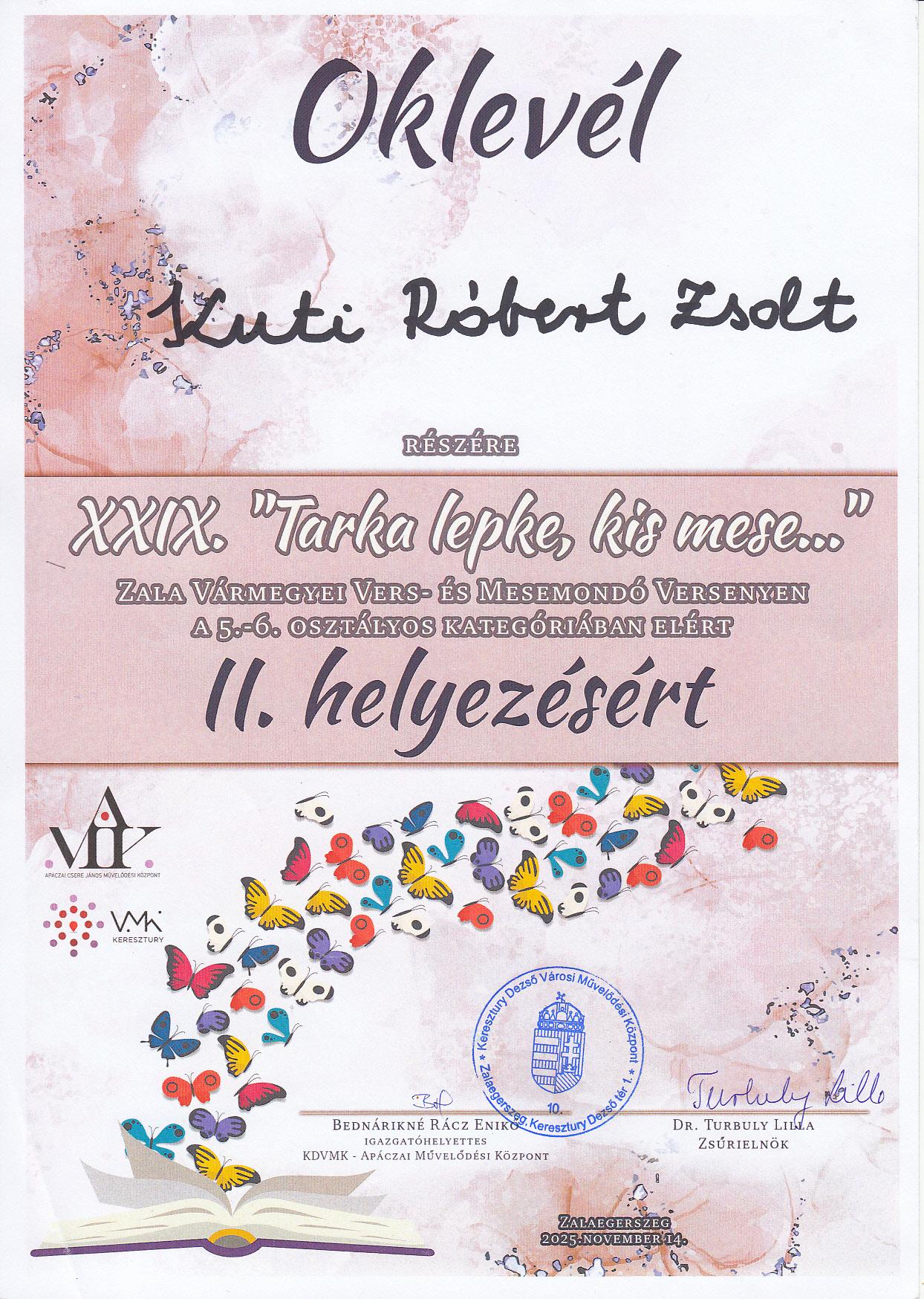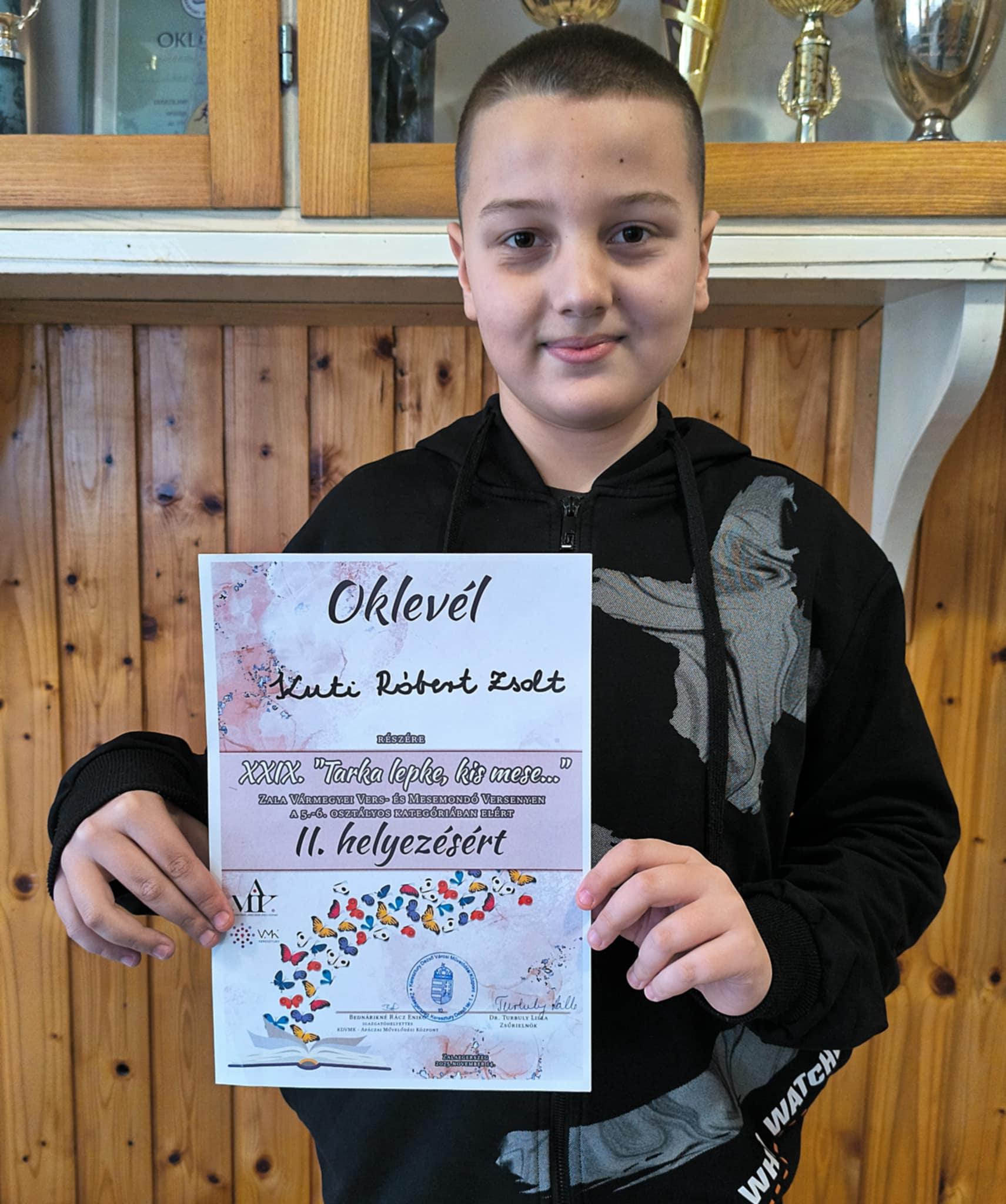 Örömünkre szolgál, hogy az 5-6. osztályos korcsoportban Kuti Róbert Zsolt elhozta a II. díjat.